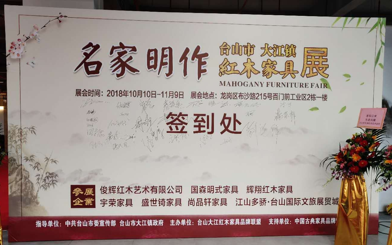 據(jù)了解,此次活動(dòng)參展企業(yè)有:俊輝紅木藝術(shù)有限公司,國(guó)森明式家具,輝翔紅木家具,宇榮家具,盛世锜家具,尚品軒家具,江山多驕·臺(tái)山國(guó)際文旅展貿(mào)城,活動(dòng)時(shí)間:2018年10月10日-11月09日。