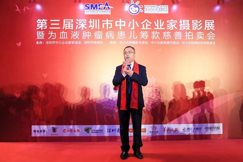 深圳中小企聯(lián)會長、銀盛集團(tuán)董事局主席林重成在開幕式上表示“攝影專委會是深圳市中小企業(yè)家聯(lián)誼會旗下成立的八大專委會之一,自2011年成立以來,特別是在劉徽主席的帶領(lǐng)下,開展了豐富多彩的攝影創(chuàng)作活動(dòng),創(chuàng)作了許許多多優(yōu)秀的攝影作品,摘獲了不少大獎(jiǎng)。他希望中小企業(yè)家既要豐富我們的精神世界,也要積極的履行企業(yè)家的社會責(zé)任,讓優(yōu)秀的攝影作品為我們的精神和心靈帶來震撼,也要讓這種震撼轉(zhuǎn)換化對血液病患兒的關(guān)愛,轉(zhuǎn)化為對慈善事業(yè)的支持和關(guān)心。