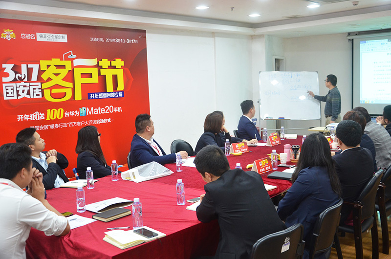 會(huì)議伊始,國(guó)安居副總經(jīng)理鄧劍峰對(duì)本次活動(dòng)具體優(yōu)惠內(nèi)容、活動(dòng)形式、宣傳方式以及力度等為大家進(jìn)行了詳細(xì)的部署,此次活動(dòng)不僅是行業(yè)新年首次活動(dòng),也是國(guó)安居2019年進(jìn)行新?tīng)I(yíng)銷手段的一次新嘗試,新突破,更是奠定影響年度營(yíng)銷基調(diào)的關(guān)鍵,所以必須先行一步,贏在起點(diǎn),相信在2019年,銷售將會(huì)提升到一個(gè)新的高度,讓我們凝心聚力加油干!
