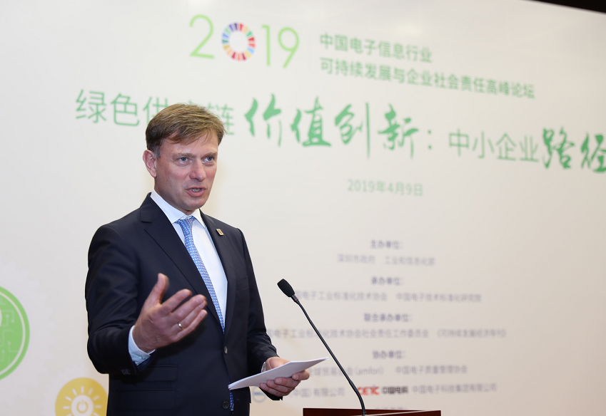 深圳新聞網(wǎng)4月10日訊 4月9日,“中國電子信息行業(yè)2019可持續(xù)發(fā)展與企業(yè)社會責任高峰論壇”在深圳會展中心成功舉行。本次會議由深圳市政府、工業(yè)和信息化部主辦,中國電子工業(yè)標準化技術協(xié)會、中國電子技術標準化研究院承辦,中國電子工業(yè)標準化技術協(xié)會社會責任工作委員會、《可持續(xù)發(fā)展經(jīng)濟導刊》(原《WTO經(jīng)濟導刊》)聯(lián)合承辦,全球貿(mào)易協(xié)會(amfori)、中國電子質(zhì)量管理協(xié)會、戴爾(中國)有限公司、中國電子科技集團有限公司協(xié)辦,論壇還得到了深圳市創(chuàng)新企業(yè)社會責任促進中心和責揚天下(北京)管理顧問有限公司的大力支持。