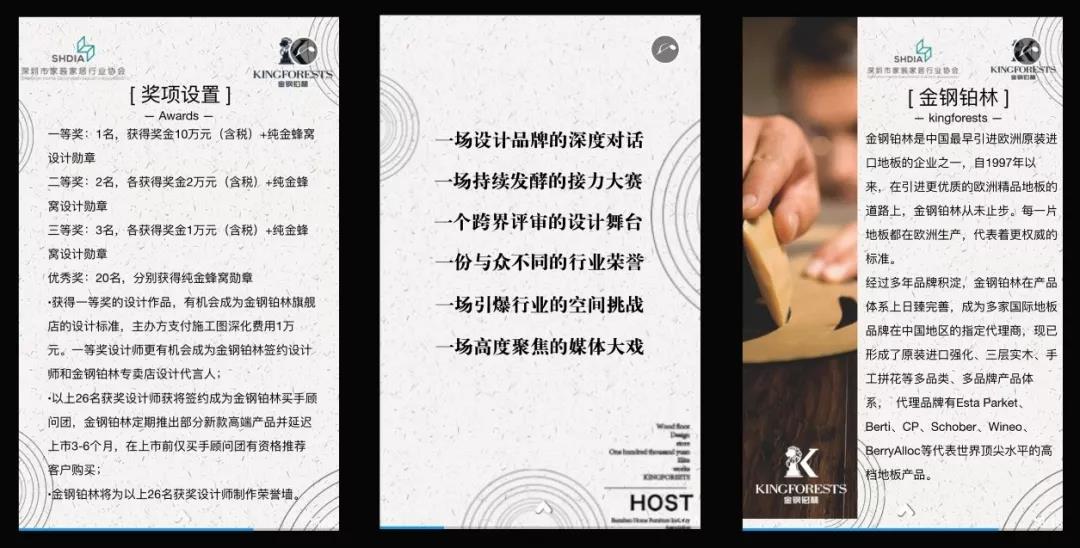 行業(yè)協(xié)會(huì)聯(lián)手中國(guó)最早引進(jìn)歐洲原裝進(jìn)口的地板企業(yè)金鋼鉑林,利用其在寶能第一空間的旗艦店即將啟幕的機(jī)會(huì),設(shè)置十萬(wàn)元的現(xiàn)金大獎(jiǎng)來(lái)舉辦賽事,就是要推動(dòng)行業(yè)設(shè)計(jì)力量的縱深發(fā)展。