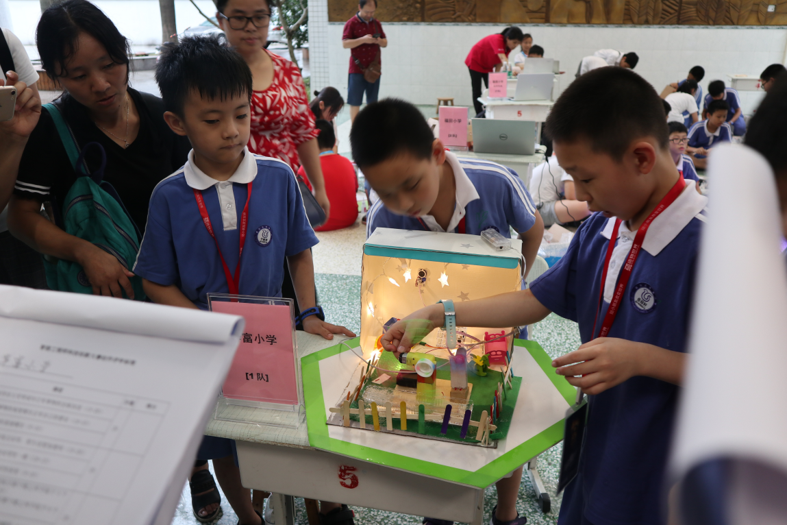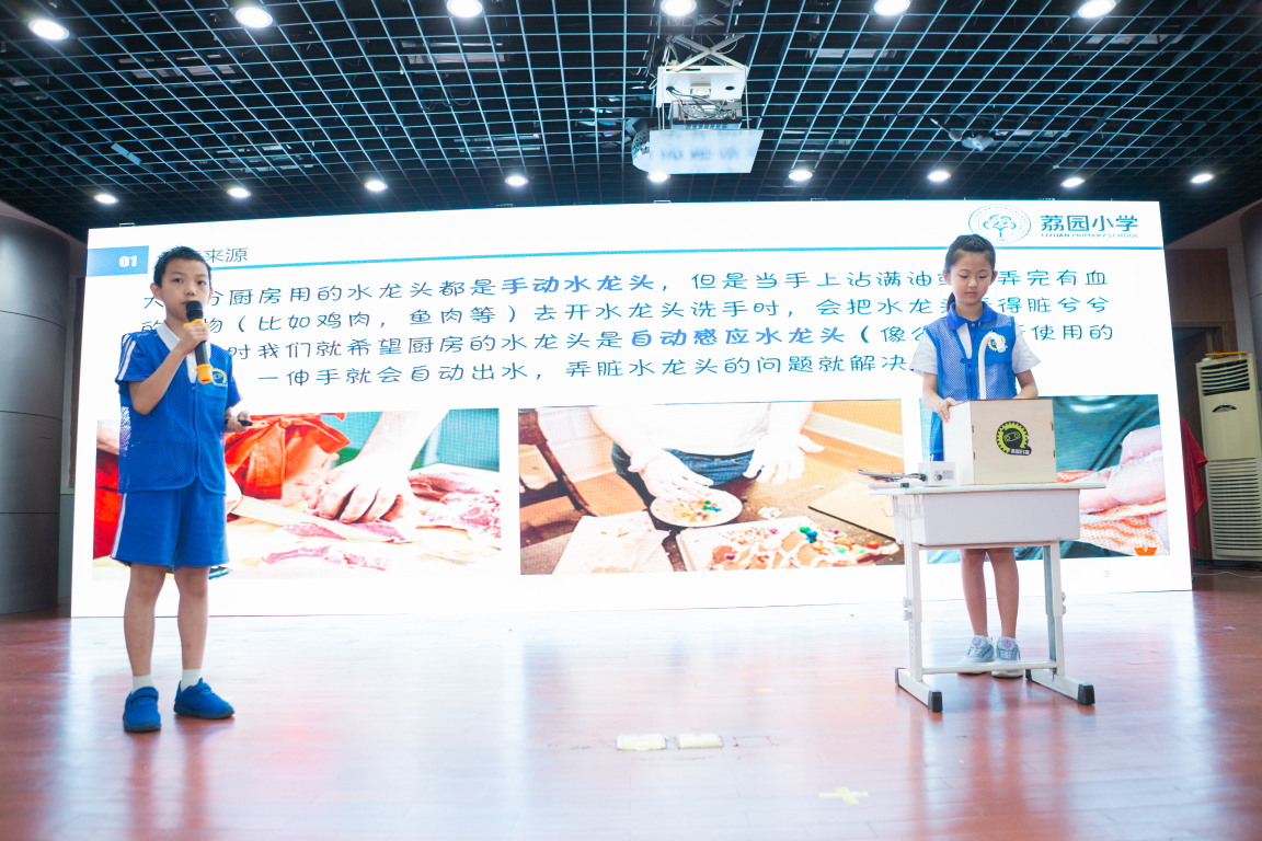 路演階段更是精彩紛呈,如:荔園小學通新嶺校區(qū)的“廚用智能感應水龍頭”、明德實驗學校碧海校區(qū)的“天臺智能晾曬房”、上步小學的“智能鼠標”、華富小學的“室內照明監(jiān)測盒”等眾多創(chuàng)意新奇的作品。