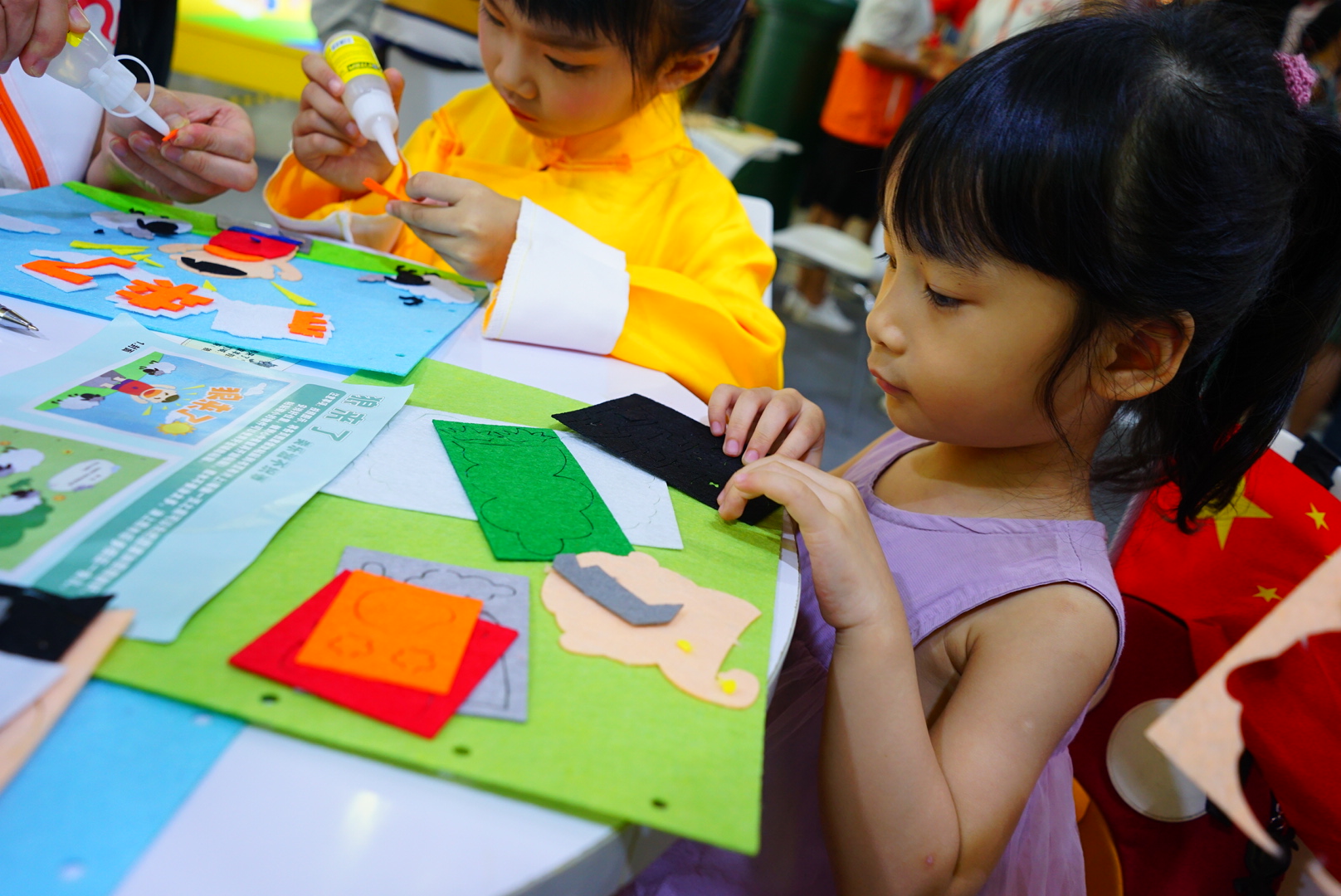 在“手工布書制作”體驗(yàn)區(qū),志愿者耐心地引領(lǐng)兒童制作專屬自己的一本不織布手工書,感受動(dòng)手及閱讀帶來(lái)的另一種快樂(lè)。
