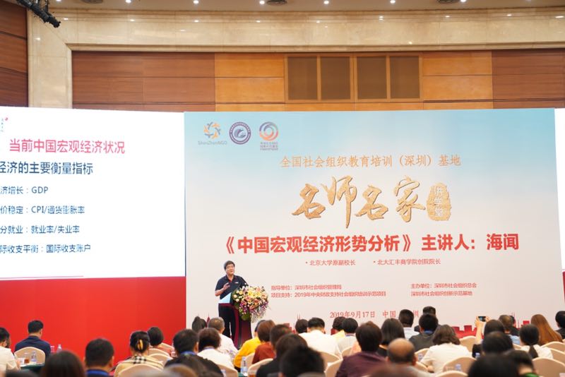 據(jù)介紹,總會依托民政部社會組織服務(wù)中心授予的“全國社會組織教育培訓(xùn)(深圳)基地”設(shè)立“名師名家講學(xué)堂”,設(shè)立兩年多來先后邀請了王石、馬蔚華、馮侖、唐杰、印順等眾多大咖“頭腦風(fēng)暴”、分享智慧,得到社會各界的普遍認(rèn)可。今年以來,作為改革排頭兵的深圳再次被委以重任,確定為中國特色社會主義先行示范區(qū),深圳面臨著面臨著全新的挑戰(zhàn)和巨大的機遇??倳鳛椤皡f(xié)會的協(xié)會”,深諳深圳社會組織及企業(yè)的迫切需求,為此講學(xué)堂特別邀請深圳匯豐商學(xué)院創(chuàng)院院長海聞教授為大家分析中國的宏觀經(jīng)濟形勢,幫助深圳企業(yè)家登高望遠(yuǎn)、把握形勢、尋找方法、積極“迎戰(zhàn)”,增強他們憂患意識的同時也增強其克服困難的信心。