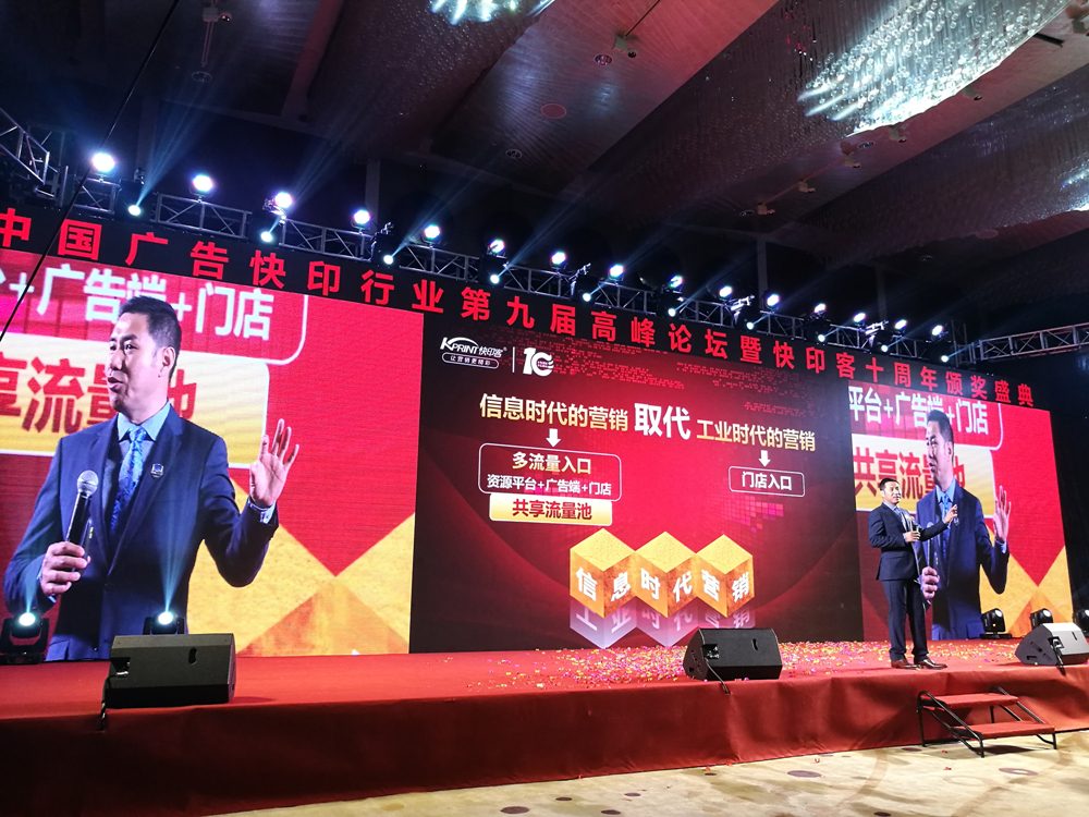 K-Print河南新鄉(xiāng)旗艦店崔總做“K-Print,共創(chuàng)廣告策劃行業(yè)美好新明天”主題演講。崔總分享了他與KP店結(jié)緣的故事,依托KP店重塑企業(yè)品牌,運(yùn)用“互聯(lián)網(wǎng)+技術(shù)營銷”創(chuàng)新模式推動(dòng)企業(yè)及行業(yè)的轉(zhuǎn)型與創(chuàng)新,為廣告快印企業(yè)鋪就了一條騰飛美好明天的快車道。