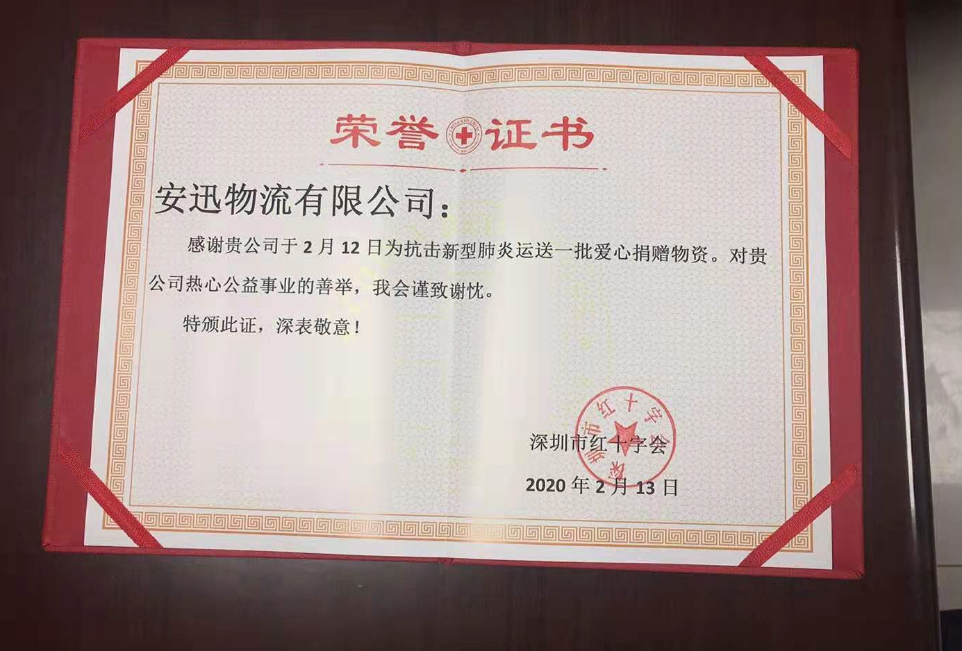 抗擊疫情|國(guó)美深圳安迅物流獲深圳紅十字會(huì)肯定