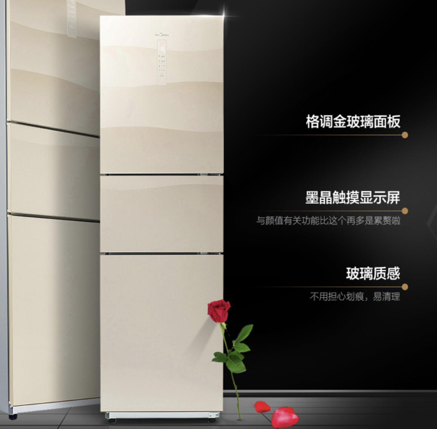美的這款BCD-239WTGM三開門冰箱,產(chǎn)品采用金色玻璃面板與墨晶顯示屏,杜絕劃痕更有質(zhì)感,寬門設(shè)計、 隱藏暗把手、三溫區(qū)黃金比例。這款產(chǎn)品三溫區(qū)可單獨控溫,分為121升冷藏室、38升變溫室和80升冷凍室,讓儲鮮多樣化。此外,風冷無霜減輕手動除霜的負擔,保持食物原始口感。