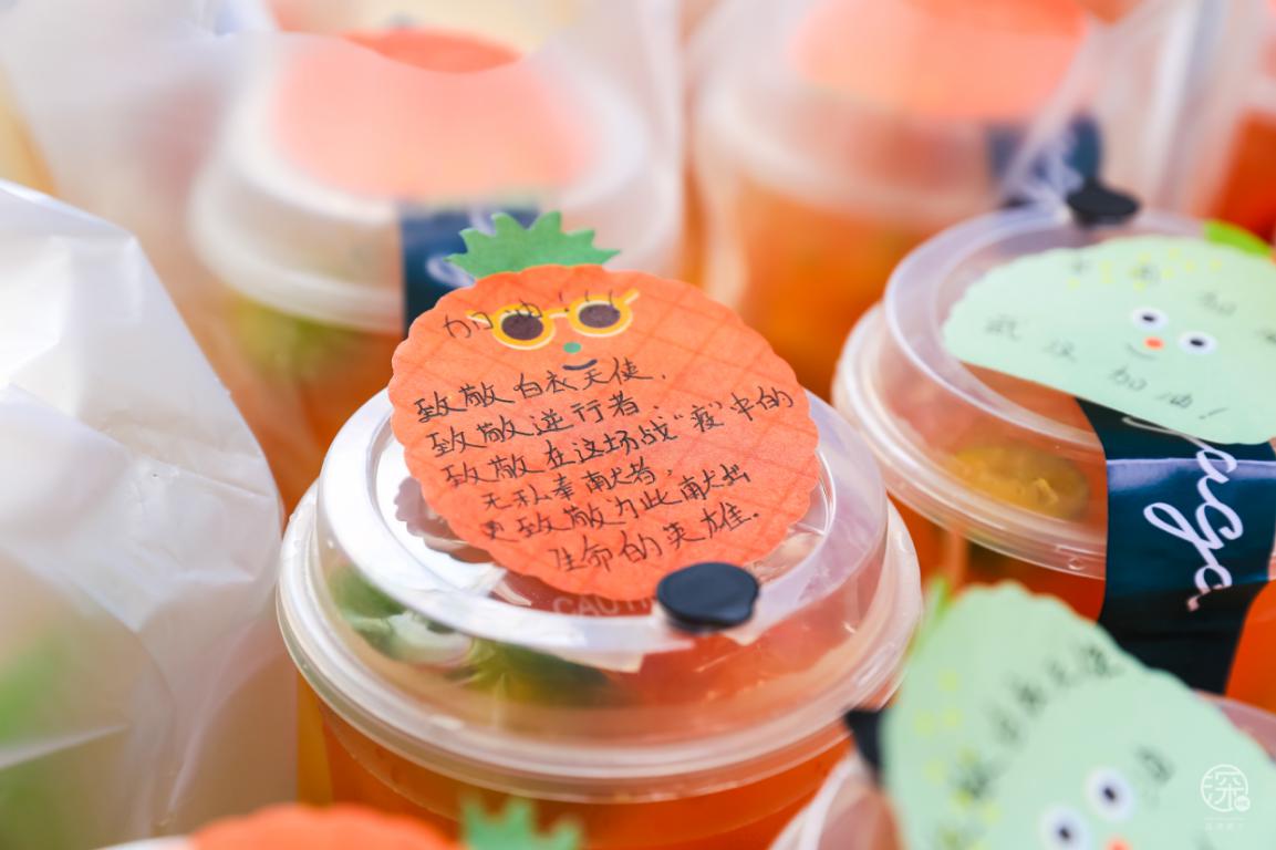 當然除了熱心市民,來獻愛心的還有卓悅INTOWN購物中心內的商戶:瑞幸咖啡、麥當勞、太平洋咖啡、CoCo都可、湊湊、gaga鮮語、HUN混果汁、享甜、Bangs Burger燕遇、辣可可現(xiàn)炒黃牛肉、旬野菜在知道這次活動后,紛紛主動提供食物或飲品,給疫情期間始終奮斗在一線的服務人員們,他們值得我們好好愛著。