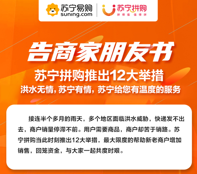 搶銷(xiāo)受災(zāi)農(nóng)產(chǎn)品!蘇寧拼購(gòu)公布助農(nóng)戰(zhàn)汛四大政策