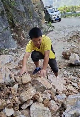 由于前期暴雨天氣,焦厚松車才開到半路,就看到前方的路有了滑坡,緊靠著崖壁的道路已經(jīng)垮了一半。“掉頭還是前行?”焦厚松最終戰(zhàn)勝了猶豫,“答應(yīng)了用戶今天送到,不能就這樣放棄,先看看情況?!彼_始下車觀察路況,發(fā)現(xiàn)主要是碎石堵住了前方七八米的路程?!叭绻謇硪恍?,車輛就能開過去。”說干就干,焦師傅隨后就開始徒手清理路上的石塊。