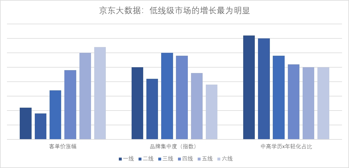 京東大數(shù)據(jù)從“客單價漲幅、品牌集中度、高學歷及年輕人占比”等指標對1 -6線消費者的月餅購買數(shù)據(jù)進行分析發(fā)現(xiàn),京東月餅消費者大學及以上學歷占比70%;90后用戶占比65%;中高消費水平用戶占比98%;此外需要注意到中低線市場“小鎮(zhèn)”中等收入人群的崛起,這些年輕化、高學歷、懂品味的人群正在引導整體消費市場從追求性價比到品牌、品味等更高追求的轉變。