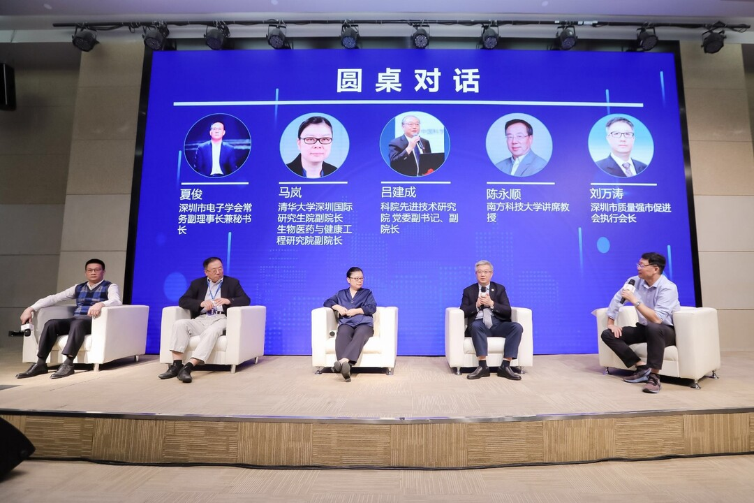 在圓桌對(duì)話環(huán)節(jié),深圳市電子學(xué)會(huì)常務(wù)副理事長(zhǎng)兼秘書長(zhǎng)夏俊、深圳市質(zhì)量強(qiáng)市促進(jìn)會(huì)執(zhí)行會(huì)長(zhǎng)劉萬(wàn)濤等嘉賓以“學(xué)科發(fā)展、科技進(jìn)步、人才成長(zhǎng)和科學(xué)普及等方面的作用”為主題展開交流與討論。