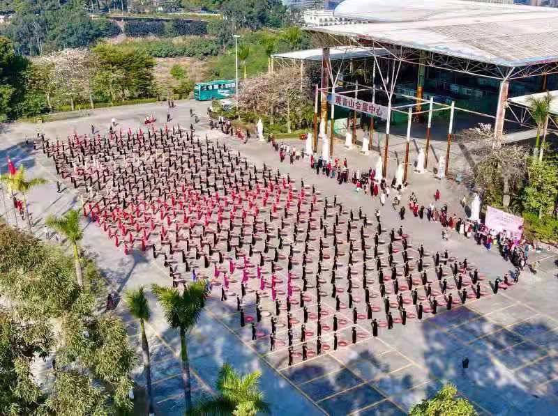 在這辭舊迎新之際,由東莞市旗袍文化藝術(shù)協(xié)會主辦的首屆旗袍文化藝術(shù)節(jié)在觀音山隆重舉行,千余名東莞市旗袍文化藝術(shù)協(xié)會會員穿著各具特色的旗袍盛裝出席,通過千人集體舞、分會特色才藝展、棧道集體快閃等形式,展現(xiàn)當(dāng)代女性的優(yōu)雅風(fēng)采。