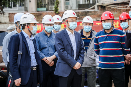 李卓一行在門(mén)口測(cè)溫登記后進(jìn)入施工區(qū)域,實(shí)地調(diào)研了項(xiàng)目施工進(jìn)度,同時(shí)聽(tīng)取項(xiàng)目負(fù)責(zé)人詳細(xì)介紹了項(xiàng)目春節(jié)期間施工部署等相關(guān)情況,對(duì)項(xiàng)目周密詳細(xì)的安排表示肯定。