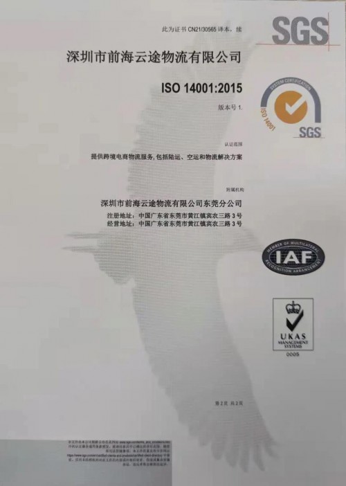 東方網2021年3月11日訊 繼2020年初獲得ISO9001質量管理體系認證后,近日云途物流順利通過專家組評審,再次獲得由國際公認的檢驗、鑒定、測試和認證機構SGS頒發(fā)的ISO14001環(huán)境管理體系、ISO45001職業(yè)健康與安全管理體系認證。