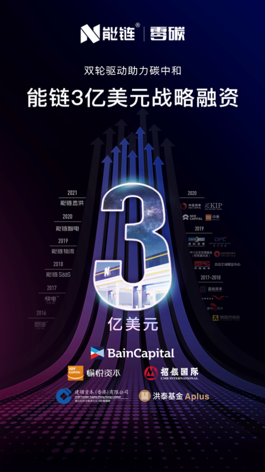 中國網(wǎng)2020年3月23日訊 昨日,能鏈宣布完成新一輪2億美元戰(zhàn)略融資,貝恩資本(Bain Capital)領(lǐng)投,老股東愉悅資本繼續(xù)跟投,華興資本擔(dān)任獨(dú)家財(cái)務(wù)顧問。綜合今年年初招銀國際領(lǐng)投的1億美元融資,能鏈本次戰(zhàn)略輪系列融資累計(jì)金額達(dá)3億美元。能鏈股東還包括中金資本、洪泰基金旗下國調(diào)洪泰、中小企業(yè)發(fā)展基金、小米集團(tuán)、蔚來資本、KIP中國等。
