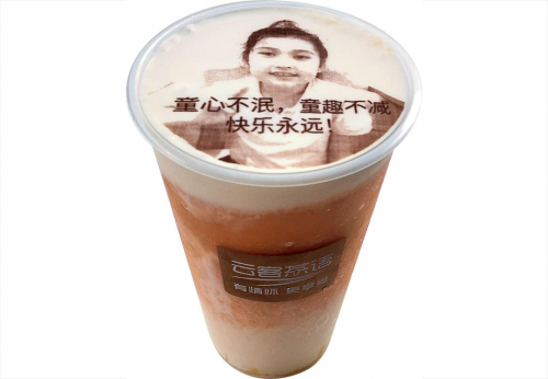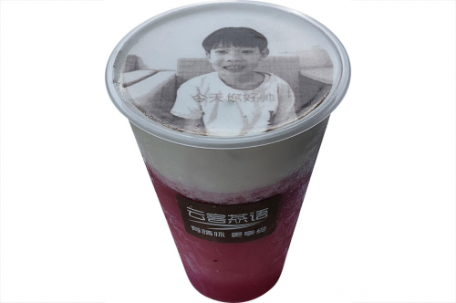 建議由孩子把自己或家人的照片加上一句話祝愿的話,作成圖片先保存到手機(jī)里。到店后,在云客茶語(yǔ)小程序上傳打印到奶茶上。整個(gè)制作過(guò)程約10分鐘。