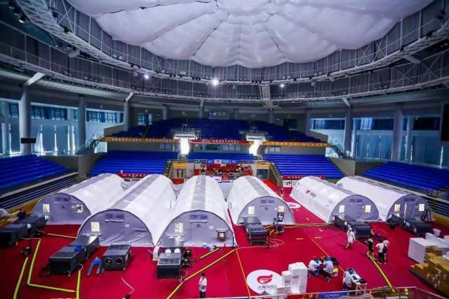 從5月27號(hào)凌晨5時(shí)物料進(jìn)入場(chǎng)館開(kāi)始,華大團(tuán)隊(duì)在深圳市衛(wèi)健委、鹽田區(qū)衛(wèi)健局、深圳鹽田區(qū)供電局、鹽田體育中心等各部門(mén)單位的大力支持和協(xié)調(diào)下,6小時(shí)內(nèi)快速搭建起2套、6個(gè)艙體的快裝式負(fù)壓硬氣膜核酸檢測(cè)實(shí)驗(yàn)室(以下簡(jiǎn)稱"硬氣膜實(shí)驗(yàn)室"),隨即,鹽田區(qū)搭載了華大智造自動(dòng)化設(shè)備的"火眼實(shí)驗(yàn)室"投入試運(yùn)行,并在9小時(shí)內(nèi)通過(guò)專家組評(píng)審。