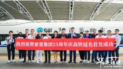 10月28日上午,索愛集團(tuán)董事長劉建佳、總經(jīng)理全雪梅、華鐵傳媒集團(tuán)廣州分公司銷售總經(jīng)理劉延群等領(lǐng)導(dǎo)嘉賓共同為冠名發(fā)車儀式揭幕、剪彩、互贈紀(jì)念禮品,在現(xiàn)場嘉賓的共同見證下,張貼索愛全新品牌代言人陳小春夫婦形象宣傳海報(bào)的“索愛-為音樂而生”高鐵冠名列車正式啟程。