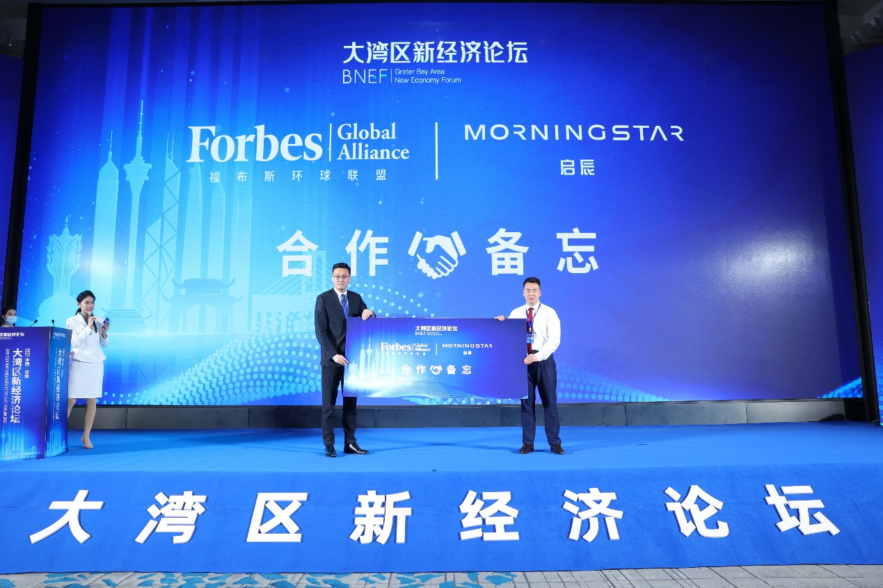 論壇現(xiàn)場啟動福布斯環(huán)球聯(lián)盟和新經(jīng)濟(jì)論壇合作備忘儀式,大灣區(qū)新經(jīng)濟(jì)論壇發(fā)起人馬曉晨和福布斯環(huán)球聯(lián)盟會員發(fā)展部總監(jiān)郭雋祎Michael上臺攜手展示合作備忘,未來合作雙方將提攜并進(jìn),共同發(fā)展。