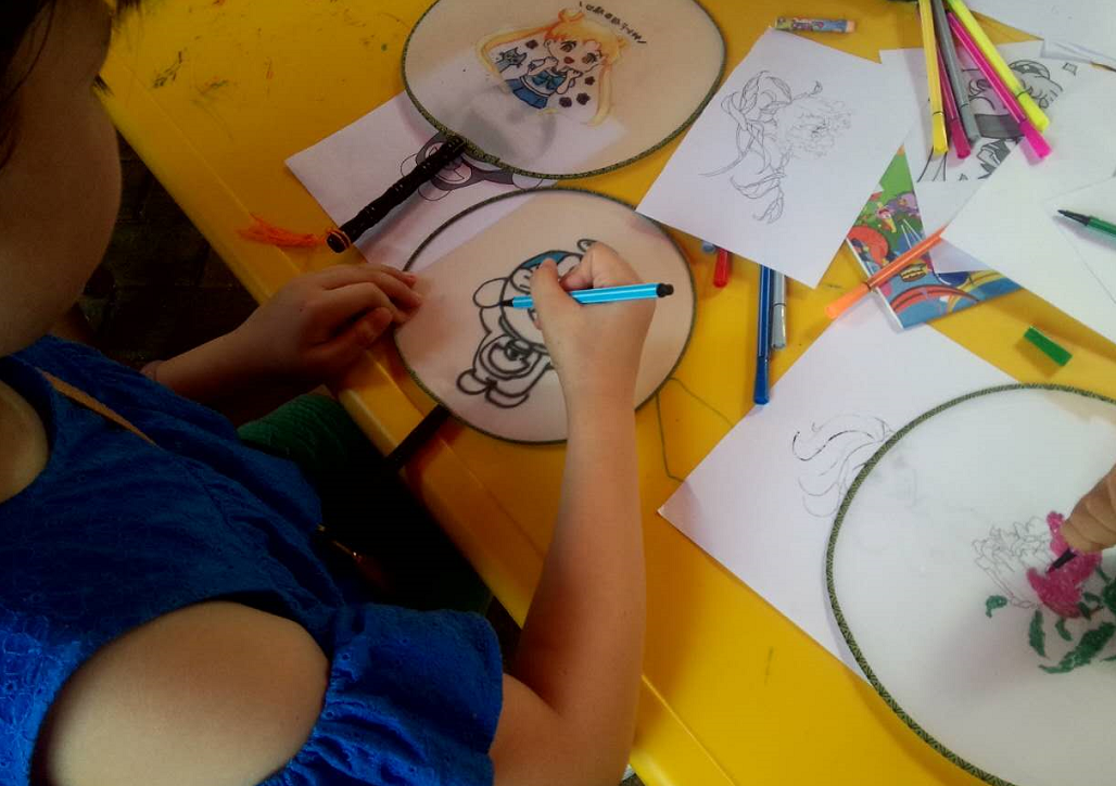 而在所有體驗(yàn)項(xiàng)目中,扇子彩繪成為人氣最旺的一個(gè)體驗(yàn)項(xiàng)目。從活動(dòng)開始,一波又一波的小朋友涌進(jìn)扇子彩繪體驗(yàn)區(qū)。有的家長和孩子齊上陣,挑選好自己喜歡的扇面后,就在深圳國子監(jiān)文化傳播有限公司的專業(yè)老師指導(dǎo)下開始精心創(chuàng)作,充滿童趣的卡通畫、意境悠遠(yuǎn)的山水畫、栩栩如生的工筆畫,每一幅作品都引來眾多的圍觀贊嘆。