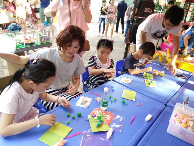 棉花糖、跳房子,讓家長們找回了童年的記憶和樂趣。而動(dòng)手動(dòng)腦的扇子彩繪、剪紙、中國結(jié)制作、軟陶制作則讓孩子們體驗(yàn)到手工制作的樂趣。