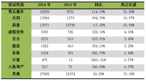 深圳市2016年消費(fèi)投訴情況分析
