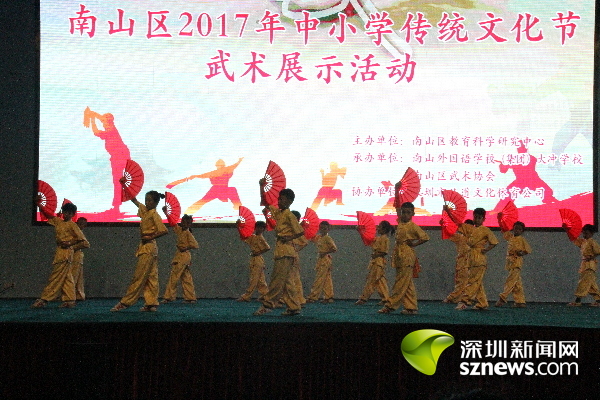 南山區(qū)2017年中小學(xué)傳統(tǒng)文化節(jié)武術(shù)展示活動由南山區(qū)教育科學(xué)研究中心主辦,南山外國語學(xué)校(集團(tuán))大沖學(xué)校和南山區(qū)武術(shù)協(xié)會承辦。南山區(qū)教育科學(xué)研究中心主任余耀賢介紹,為進(jìn)一步弘揚(yáng)優(yōu)秀中華傳統(tǒng)文化,落實(shí)立德樹人的根本任務(wù),南山區(qū)教育局舉行了首屆傳統(tǒng)文化節(jié)活動,開展了經(jīng)典詩詞特色展演、中小學(xué)書法大賽、中國戲曲和民族樂器比賽、中小學(xué)生圍棋大賽、傳統(tǒng)文化沙龍和專家報告等形式多樣的活動。
