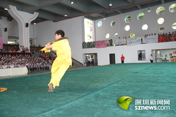 深圳新聞網(wǎng)訊(記者 王志明 通訊員趙小平)長拳如虹,刀光棍影。5月26日,南山區(qū)2017年中小學(xué)傳統(tǒng)文化節(jié)武術(shù)展示活動在南山外國語學(xué)校(集團(tuán))大沖學(xué)校精彩上演,來自南山區(qū)西麗二中、南頭城小學(xué)等16所學(xué)校幼兒園的師生“以武會友”,進(jìn)行了太極劍、南拳和刀術(shù)等48個項(xiàng)目角逐,并向大家展示了所學(xué)到的“中國功夫”。南山區(qū)副區(qū)長練聰觀看了武術(shù)展示。