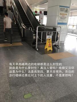 在7月2日的這條投訴中,有市民還指出了電梯停運時間的不合理,稱木棉灣站的地鐵每逢工作日高峰期就“暫停使用”,到了平峰期就正常運行。這也引起了其他一些乘客的質(zhì)疑。家住木棉灣站附近的李先生說:“非高峰時段電梯就能用,說明電梯本身沒問題,那為什么不開放給人多的時候用呢?”市民張先生則認(rèn)為,地鐵方面可能是為了降低維護(hù)成本,“怕人多踩壞了,要花錢花時間修唄”。但也有市民猜測電梯停運或有安全方面的考慮。“畢竟不會無緣無故就停了吧,可能是考慮到高峰客流量多,所以關(guān)掉不用的?!倍排勘硎?,可以接受因為安全問題而采取的停運措施,“走走樓梯也沒有什么。