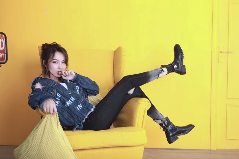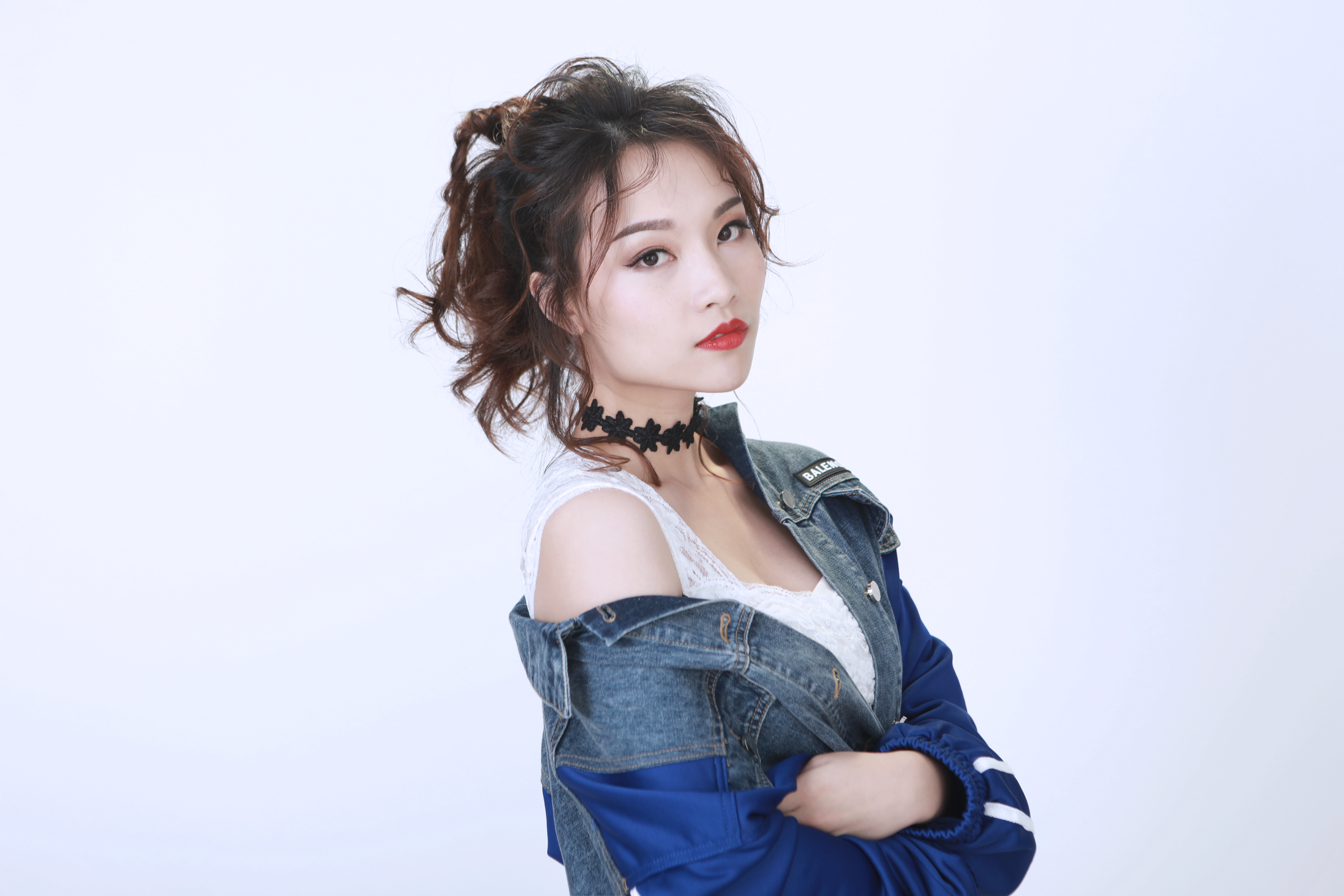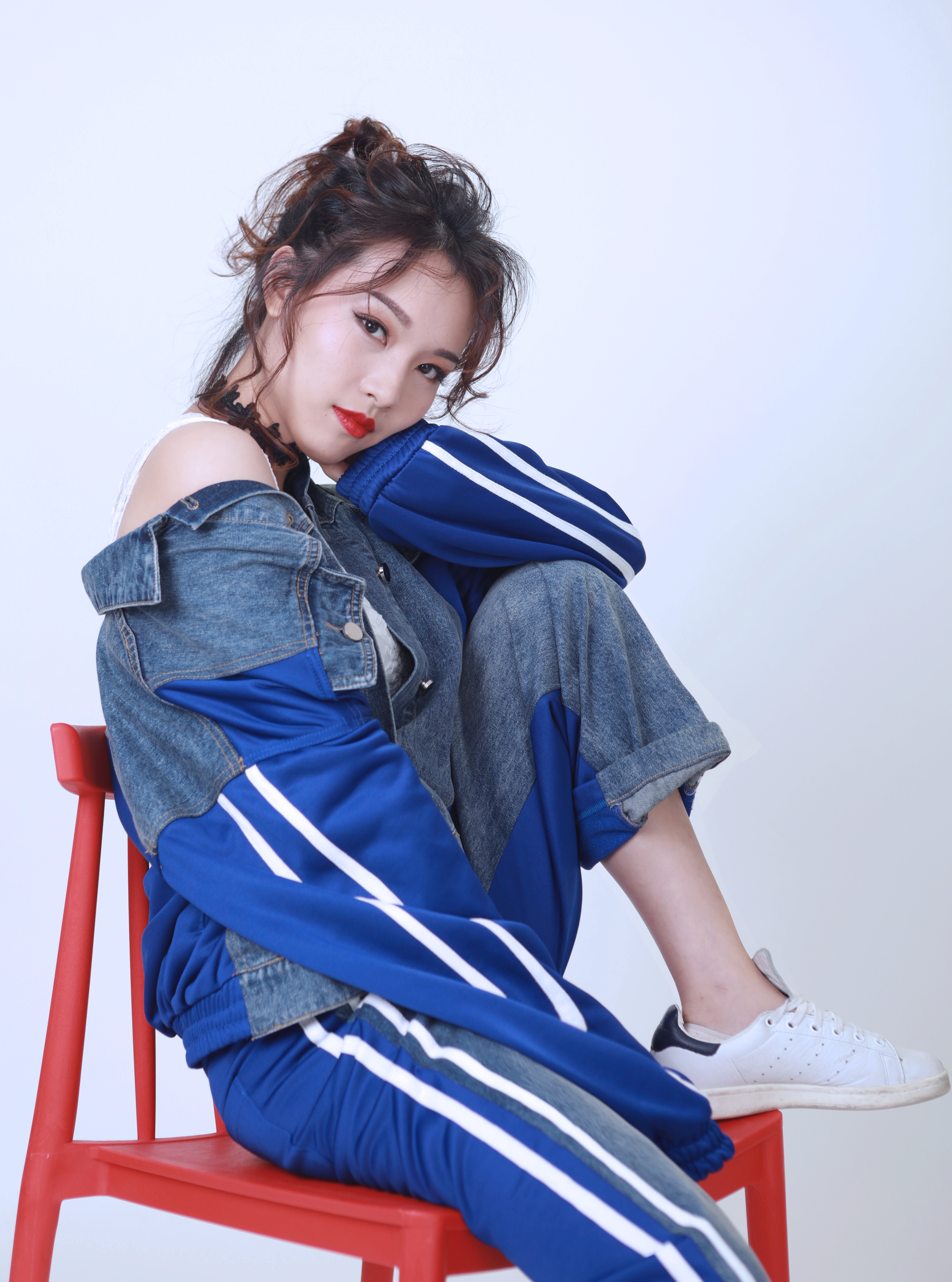 改造后的芷苑小姐姐大走街頭風(fēng),一頭卷發(fā)胡亂綁成高馬尾,搭配星星破洞oversized牛仔外套&漸變牛仔skinny,碰撞上大紅唇色,一改之前的乖巧模樣。