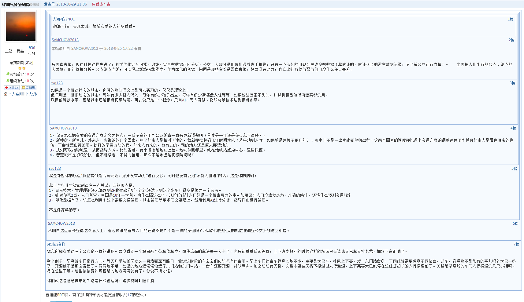 9月25日有市民在深圳論壇以《關(guān)于公交線路規(guī)劃和站臺(tái)設(shè)置的一點(diǎn)建議》為題發(fā)帖,自稱是曾經(jīng)的公交人和現(xiàn)在的私家車駕駛員,對(duì)深圳的公交出行一口氣提出3個(gè)意見。帖文中最為吸引人眼球的觀點(diǎn)就是“將全市各站點(diǎn)進(jìn)行編號(hào),采用計(jì)算機(jī)技術(shù),對(duì)編號(hào)站點(diǎn)進(jìn)行排列組合,每個(gè)方向連續(xù)的10個(gè)站點(diǎn)有三條線路覆蓋,超出三條屬于線路密度高或規(guī)劃不合理。”單這一句話就在跟帖中引發(fā)了針鋒相對(duì)的辯論,有支持的市民認(rèn)為:主意不錯(cuò),實(shí)現(xiàn)起來應(yīng)該也難度不大?,F(xiàn)在不是整天提什么物聯(lián)網(wǎng)、大數(shù)據(jù)、智慧城市么,這個(gè)不就是這些高新技術(shù)在公交出行方面的應(yīng)用。不看好的市民則認(rèn)為:目前技術(shù)、管理理論還無法做智能分析,遠(yuǎn)遠(yuǎn)還達(dá)不到這個(gè)水平,“最多是做為一個(gè)參考”。