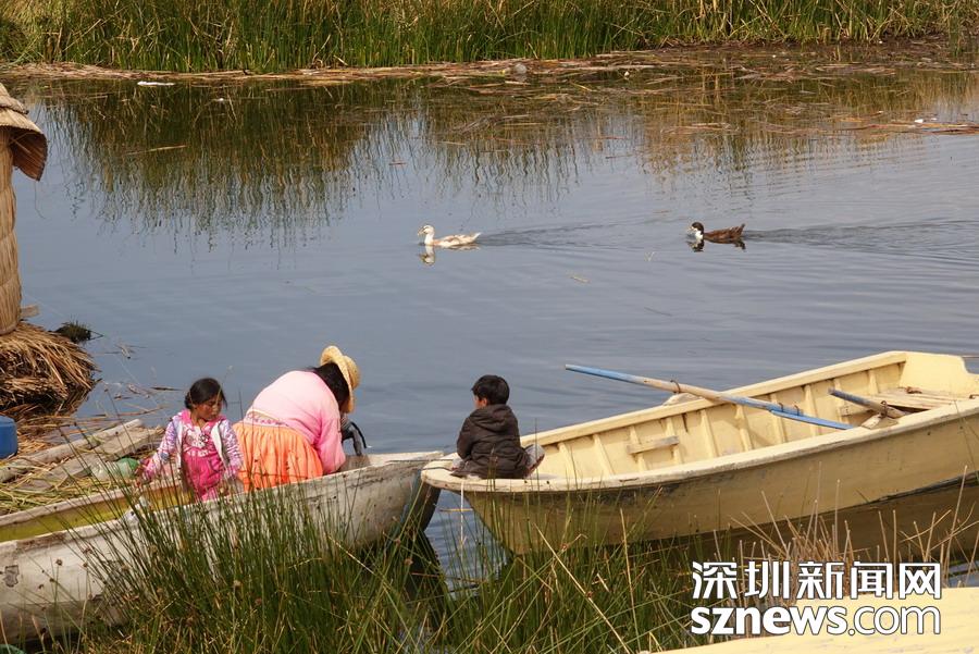 早至遠古,印第安人用香蒲編成小舟或筏子,下湖捕魚。湖中還有幾十個印第安人烏羅族居住的“漂浮島”,它們是用香蒲在湖面堆集而成的人工島,島上的居民都以捕魚為生。李仁奇 攝