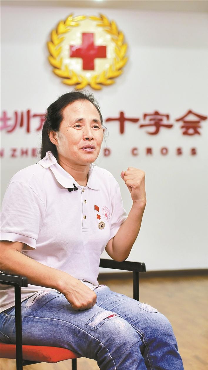 1997年,我從濟(jì)南市商河縣的農(nóng)村來(lái)到深圳,幫妹妹照看孩子。一次偶然的機(jī)會(huì),我看到路邊一輛無(wú)償獻(xiàn)血車(chē),車(chē)上寫(xiě)著缺A、B、O型血,這讓我想起了小時(shí)候看過(guò)的小人書(shū),白求恩大夫獻(xiàn)出300毫升鮮血挽救了八路軍傷員的生命,心想現(xiàn)在自己也有機(jī)會(huì)通過(guò)獻(xiàn)血去救助危重的病人,真的太好了。漸漸地,我成了深圳市紅十字會(huì)的“??汀?,也成了深圳市紅十字會(huì)的志愿者。至今,我志愿服務(wù)時(shí)間近6萬(wàn)小時(shí),無(wú)償獻(xiàn)血316次。