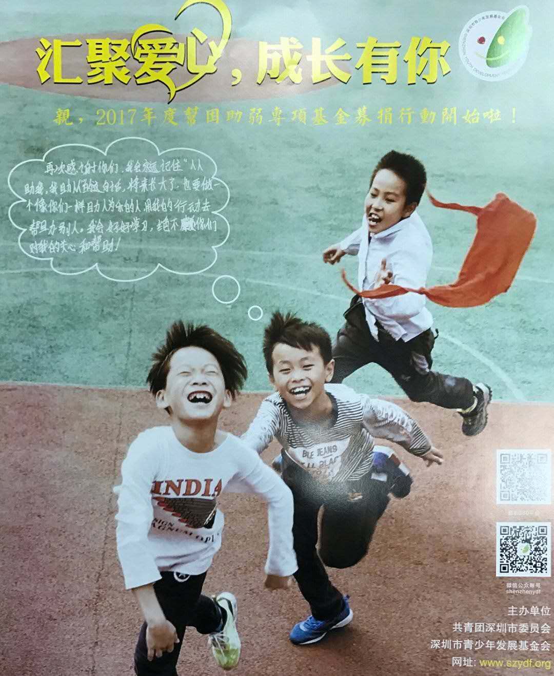 為關(guān)心關(guān)愛青少年健康成長(zhǎng),營(yíng)造樂觀、積極向上的社會(huì)氛圍,深圳農(nóng)商行發(fā)起了“匯聚愛心成長(zhǎng)有你”的公益愛心活動(dòng),號(hào)召全行向2017年度深圳市青少年幫困助弱專項(xiàng)基金進(jìn)行愛心捐助。活動(dòng)得到了全行上下的大力支持,全行共募集善款人民幣221156.66元。青基會(huì)對(duì)深圳農(nóng)商行員工的善舉表示了深深的謝意,并期待與深圳農(nóng)商行開展更廣泛、更深入的公益活動(dòng)合作。