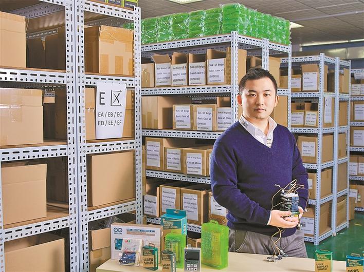 我在大學甚至更早的時候就深有體會——我有很多想法,但是缺乏必要的技術去把這個想法實現出來。我在國外的一個開源硬件論壇留言說我的體會,沒想到有那么多創(chuàng)客回饋說有同感,論壇上創(chuàng)客們的積極回應讓我看到了商機。我發(fā)現,很多硬件模塊因為創(chuàng)客需要的量少,很多工廠不愿意生產。后來,我想到了在國際創(chuàng)客論壇發(fā)帖征集創(chuàng)客們的需求,再到國內電子市場搜集硬件加工后發(fā)給創(chuàng)客的點子。于是,我便做起了開源硬件的生意?!盀閯?chuàng)客服務”,這是我創(chuàng)業(yè)的最初目標。