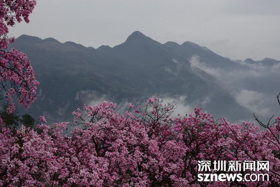 北川藥王谷,雨霧濛濛之中觀賞盛開的辛夷花,宛若置身仙境......李仁奇 攝