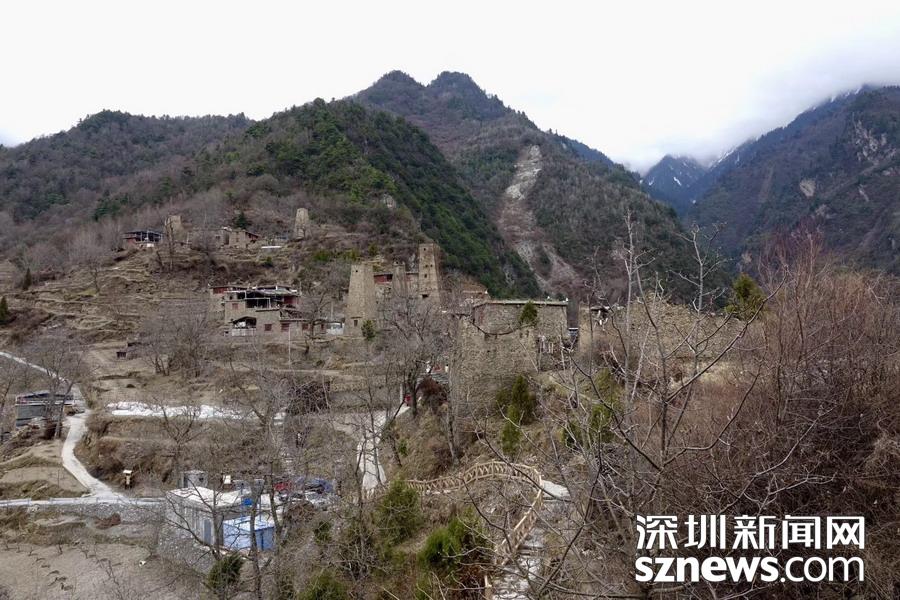 黑虎羌寨古稱“黑貓寨”,修建于唐代以后。是當?shù)匾恢甲逍〔柯錇榈钟练謹_建起來的“邛籠”(石砌碉樓)。古寨中現(xiàn)在留存高高矗立的十一座羌碉,保持著當年風(fēng)煙滾滾的御敵氣勢。李仁奇 攝