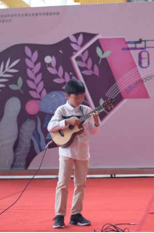 深圳10歲的小朋友陳厚坤首先帶來一曲《While my guitar gentlely weeps》,這首曲目是世界最負(fù)盛名的演奏家Jake Shimabukuro的成名作,難度可想而知,陳厚坤小朋友穩(wěn)定嫻熟的演奏,為音樂會拉開了序幕。