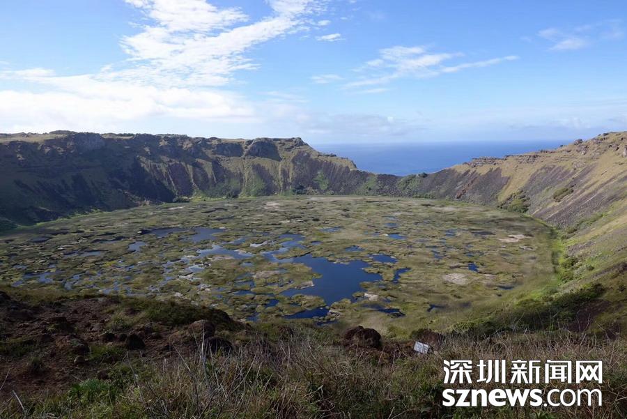 其中全島最高點(diǎn)的火山口距海岸線(xiàn)不足百米,形狀最為完整典型。底部的積水形成數(shù)以百計(jì)的深潭,據(jù)說(shuō)從火山口邊沿至水面以下的底部深達(dá)2000米左右。李仁奇 攝