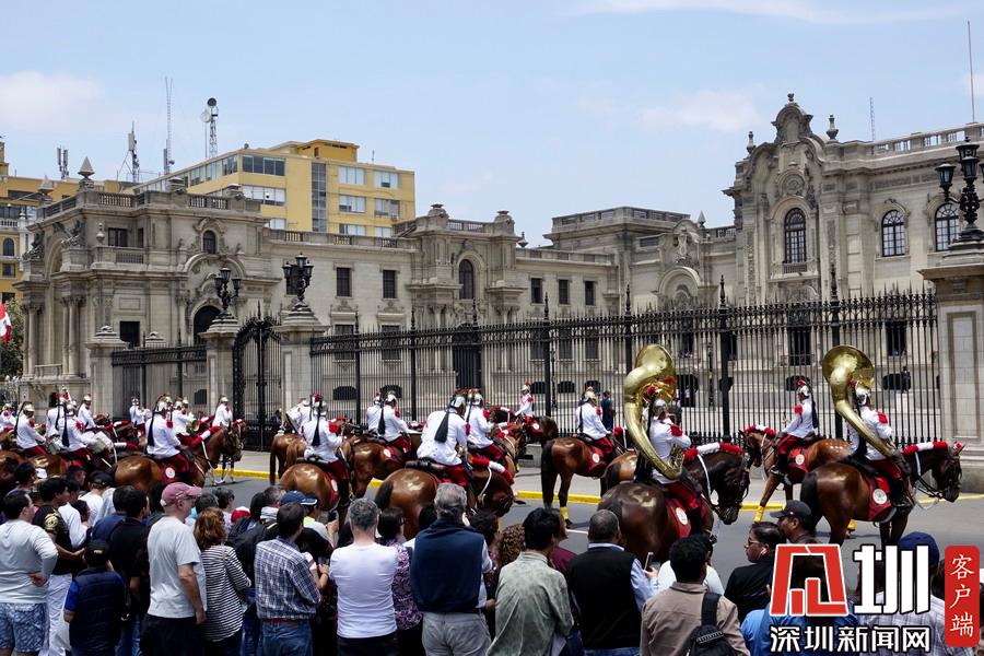 可能也與秘魯民俗有關(guān),秘魯國(guó)家軍樂隊(duì)也會(huì)同時(shí)在利馬總統(tǒng)府門前廣場(chǎng)公開盛裝演練,市民都可以近距離觀賞。李仁奇攝
