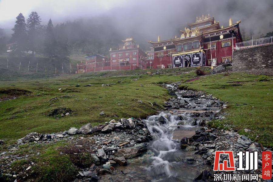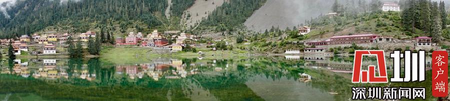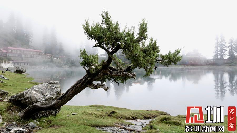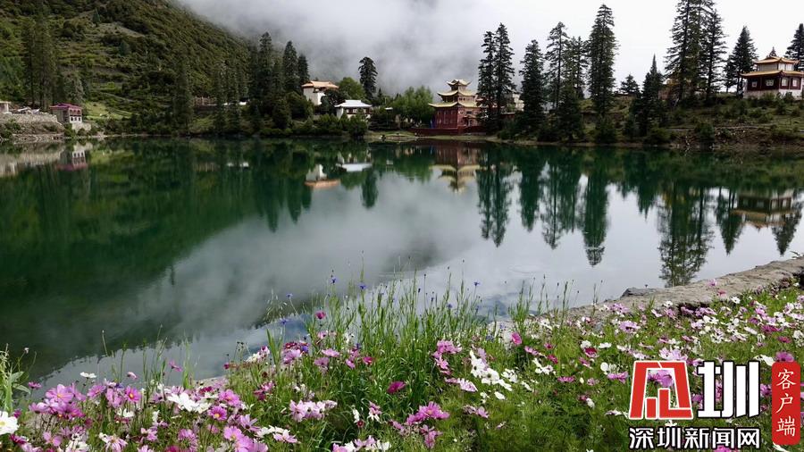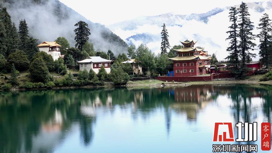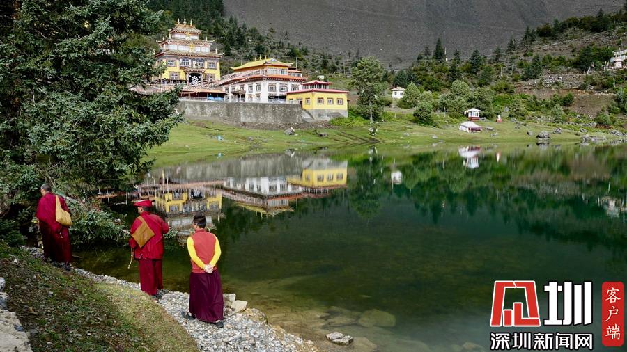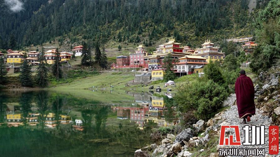 湖的四周是森林和由措卡寺寺僧主持修建的藏傳佛教各色建筑,它們時而云遮霧障,時而與藍(lán)天白云一起倒映在湖中。李仁奇攝