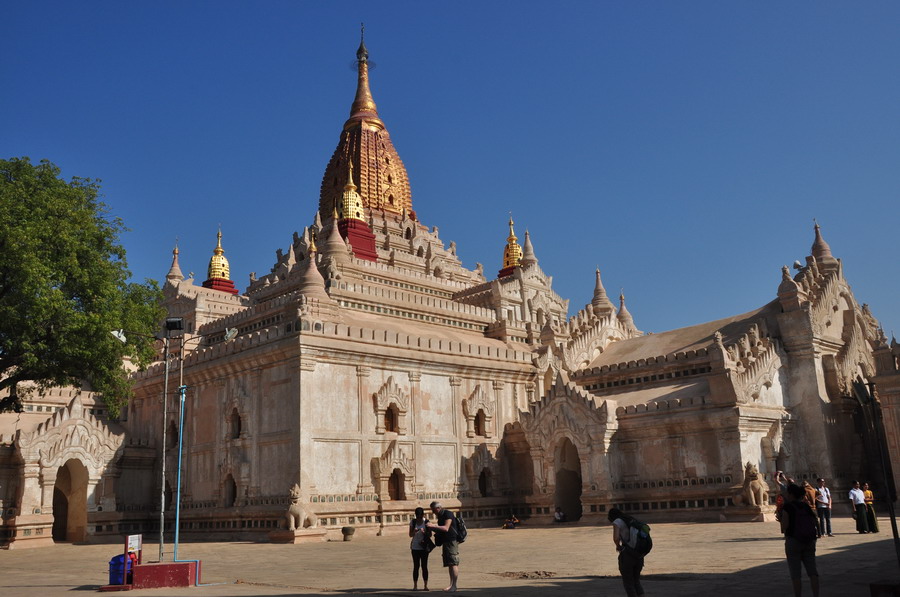包括最古老的瑞西光塔,它金碧輝煌,可以媲美仰光大金塔;建筑最優(yōu)美的阿蘭達(dá)塔造型、工藝超群,最能代表緬甸早期的古塔建筑;最高的大比紐塔高達(dá)70多米,相當(dāng)于20層樓房;還有面積最大、墻體最厚的狄馬揚(yáng)意塔等等。李仁奇攝