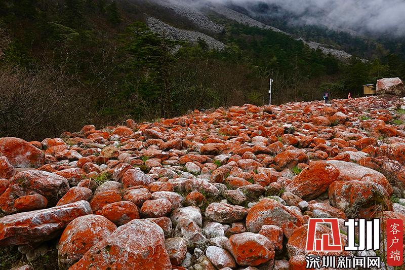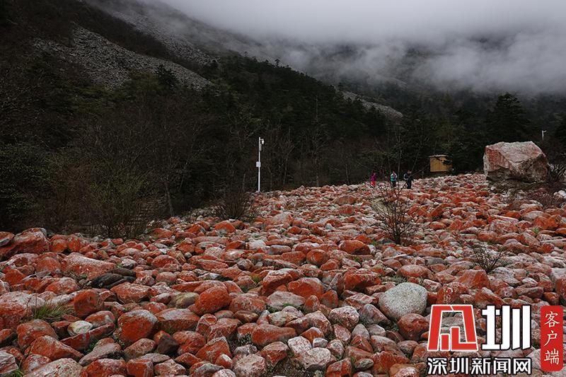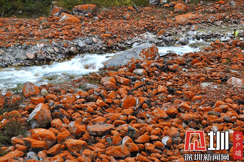 紅石對(duì)生長環(huán)境的要求極為苛刻,空氣潔凈度、濕度、水的清潔度都會(huì)影響它們的生長。雅家梗一代低碳富氧的空氣、冰山融雪的溪流、森林茂密的植被,為紅石的生長繁衍提供了最理想的環(huán)境。在這里,紅石密布于近百米寬的河谷里,不同的季節(jié),不同的天氣狀況下,幻化出不同的色彩,呈現(xiàn)朝紅夕褚的奇異景觀。