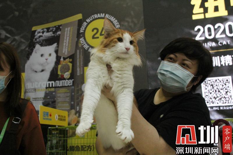 裁判正在向觀眾展示參賽貓咪。
