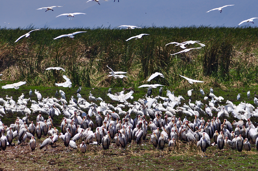 有食鹽、天然堿、鳥糞層等資源。游覽勝地,有"飛禽樂(lè)園"之稱。每年一定時(shí)期,紅鶴云集湖區(qū),綿延數(shù)公里,十分鮮艷。還有野牛、獅、象、長(zhǎng)頸鹿、猴等動(dòng)物。1960年辟為野生動(dòng)物園。李仁奇 攝