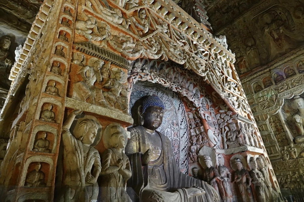 石窟依山開鑿,東西綿延約1公里。存有主要洞窟45個(gè),大小窟龕252個(gè),石雕造像51000余軀,還有部分北魏時(shí)期的壁畫,為中國(guó)規(guī)模最大的古代石窟群之一。李仁奇 攝
