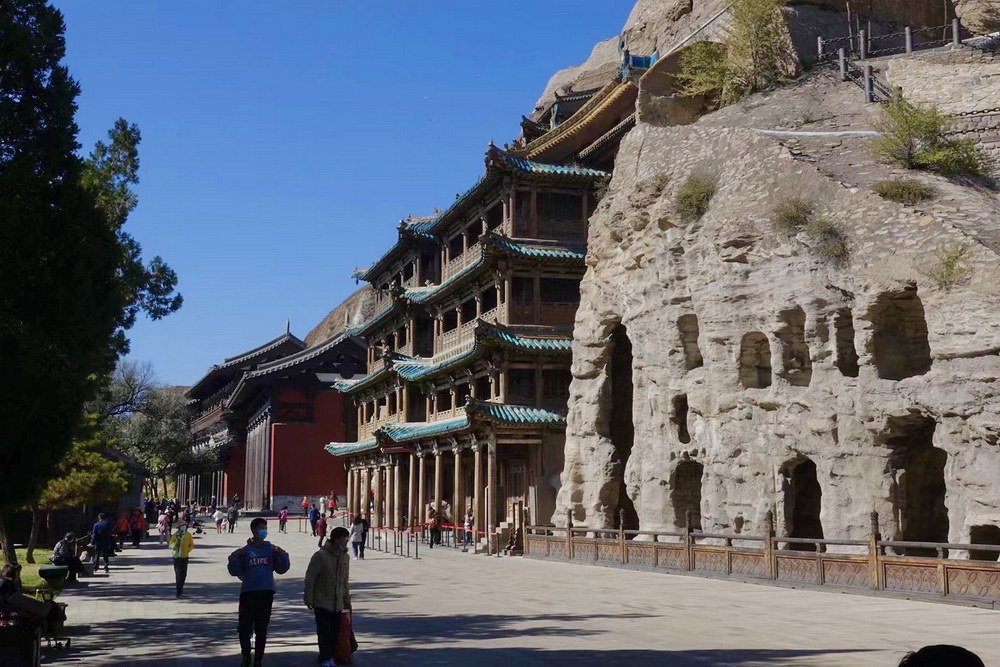 整個(gè)窟群分東、中、西三部分。東部的石窟多以佛塔為主,又稱(chēng)塔洞;中部“曇曜五窟”是云岡開(kāi)鑿最早,氣魄最大的窟群;西部窟群時(shí)代略晚,大多是北魏遷都洛陽(yáng)后的作品。李仁奇 攝