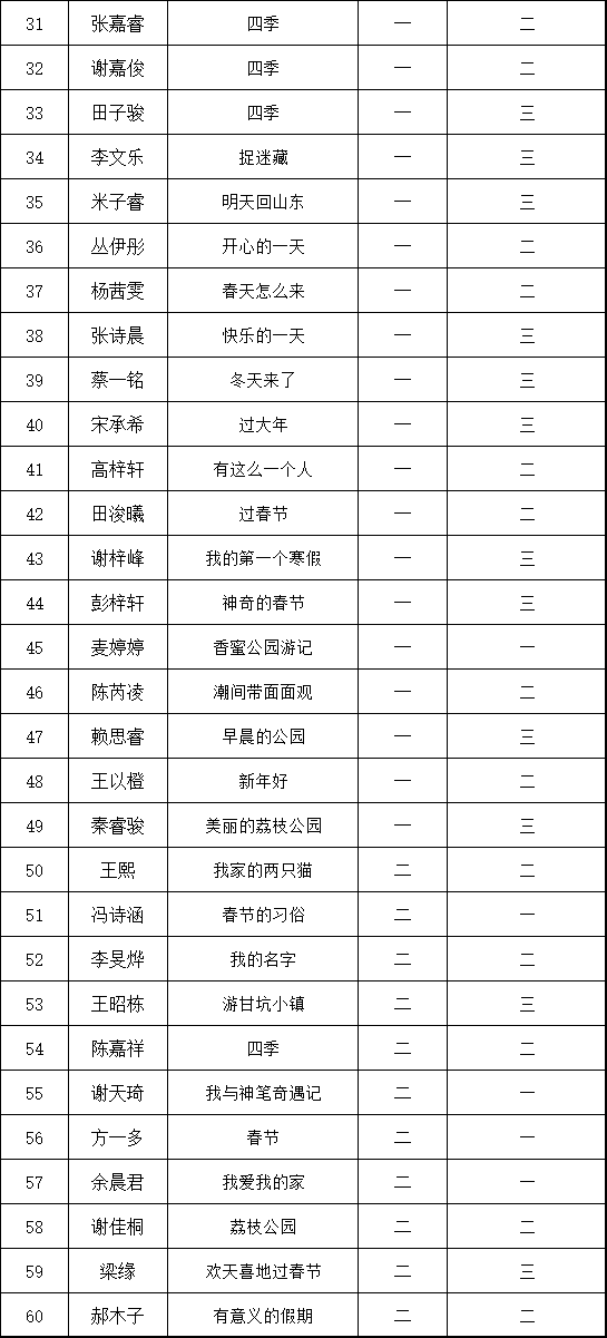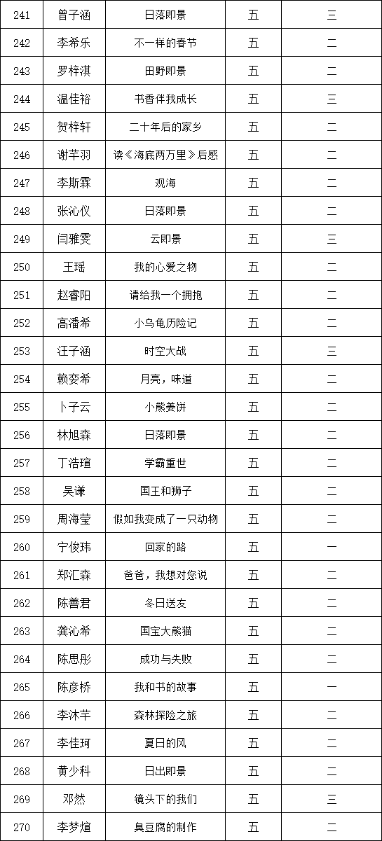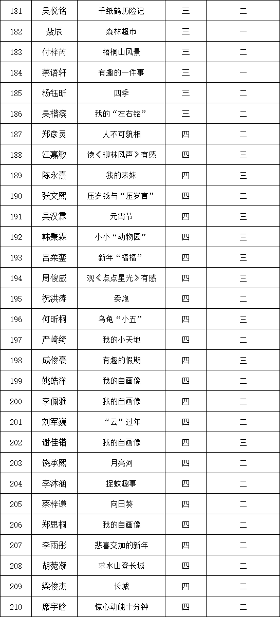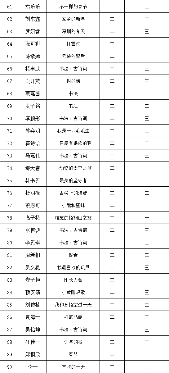 自2021年1月,活動(dòng)征稿啟動(dòng)以來(lái),獲得了深圳市廣大中小學(xué)生、教師、文學(xué)愛(ài)好者的熱烈響應(yīng)積極參與,吸引了深圳百余所學(xué)校的上萬(wàn)人關(guān)注報(bào)名。現(xiàn)公布深圳市濱河小學(xué)校園專場(chǎng)晉級(jí)復(fù)賽名單如下: