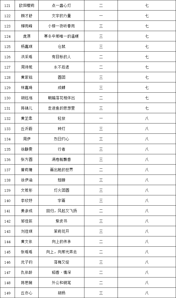 投稿后,晉級信息會在15個工作日內(nèi)公布,選手可以通過冰心文學(xué)盛典組委會的查詢系統(tǒng)進(jìn)行查詢。